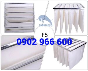 – Khung lọc túi F5 là giữa mỗi túi có một thanh kim loại để làm cho khung cứng và chịu được áp cao, và các vật liệu tách mỗi túi riêng, tăng diện tích tiếp xúc và tăng lưu lượng lọc.